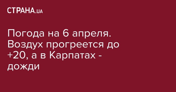 В субботу, 6 апреля, в Украине ожидается теплая погода без осадков, лишь на Закарпатье и в Карпатах днем пройдут дожди, местами - с грозами. Об этом сообщает Укргидрометцентр.