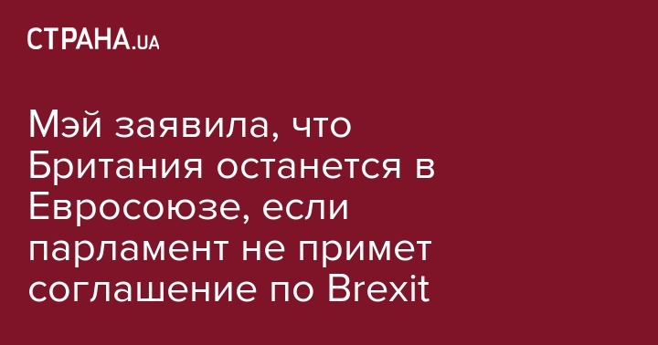 Если британскому парламенту не удастся принять соглашение по Brexit, то страна может вовсе не выйти из Евросоюза. Об этом заявила премьер-министр Великобритании Тереза Мэй, сообщает ее пресс-служба