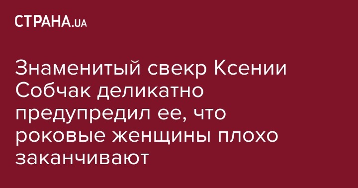 Знаменитый свекр Ксении Собчак деликатно предупредил ее, что роковые женщины плохо заканчивают