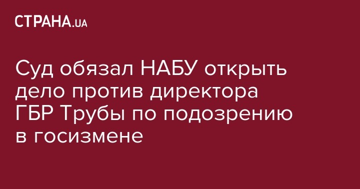 Суд обязал НАБУ открыть дело против директора ГБР Трубы по подозрению в госизмене
