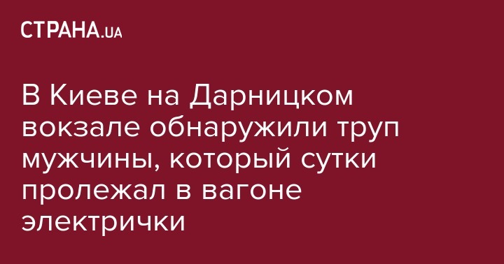 В понедельник, 8 апреля, в Киеве на Дарницком железнодорожном вокзале обнаружили труп мужчины. Тело находилось в последнем вагоне электрички между сидениями. Об этом сообщает "Информатор".