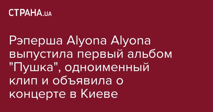 Бывшая воспитательница детского сада, рэперша Alyona Alyona (Алена Савраненко) из Барышевки выпустила первый альбом "Пушка" и новый клип на одноименную песню. Рэп-звезда объяснила название дебютного альбома, который доступен на Apple Music, Google Play и других платформах.