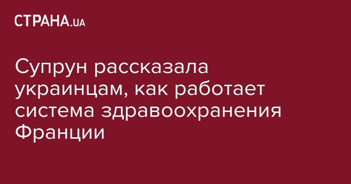 "Во Франции действует общедоступная система здравоохранения, l'assurance maladie (страховка здоровья). Кроме такой универсальной страховки можно приобрести и дополнительную, частично покрывающую расходы, которую должен платить пациент. Ежегодно парламент определяет верхнюю границу расходов на страхование, а Министерство решает, какая часть этого бюджета пойдет в каждый регион на здравоохранение. Государство утверждает договоры, по которым страховые фонды платят объединениям самозанятых врачей, определяет цены на лекарства и процедуры, делает заказ на количество студентов-медиков, и делает закупки необходимого оборудования ", - написала Супрун.