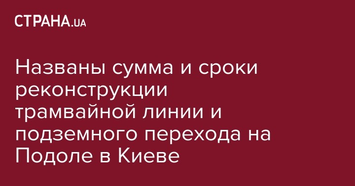 Названы сумма и сроки реконструкции трамвайной линии и подземного перехода на Подоле в Киеве