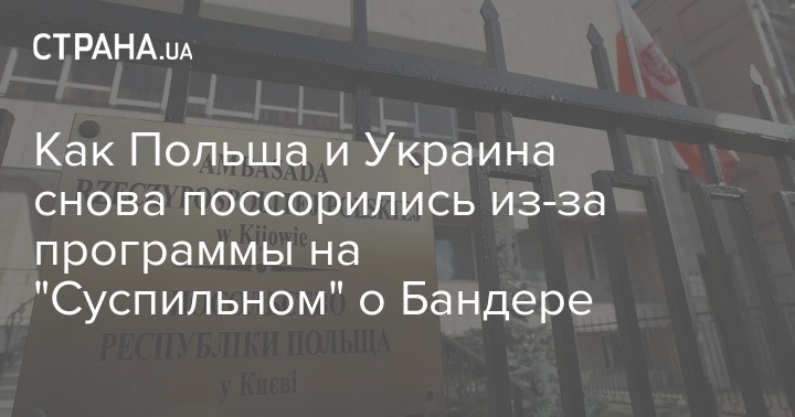 "Посольство Республики Польша в Украине выражает свое глубокое возмущение формой, а также содержанием программы Александра Зинченко "Розсекречена історія. Страсті за Бандерою", которая транслировалась на телеканале UA: Перший", - заявили в посольстве.