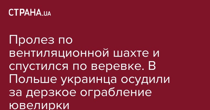 Пролез по вентиляционной шахте и спустился по веревке. В Польше украинца осудили за дерзкое ограбление ювелирки