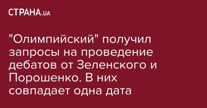 "Олимпийский" получил запросы на проведение дебатов от Зеленского и Порошенко. В них совпадает одна дата