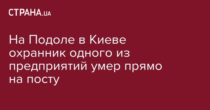 Вечером в среду, 10 апреля, на Подоле в Киеве прямо на рабочем месте умер охранник одного из предприятий. Об этом сообщает "Информатор".