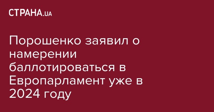 Порошенко заявил о намерении баллотироваться в Европарламент уже в 2024 году