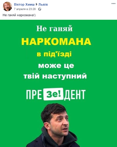 А в соцсети замечены подобные картинки, но уже с лицом кандидата в президенты Владимира Зеленского.