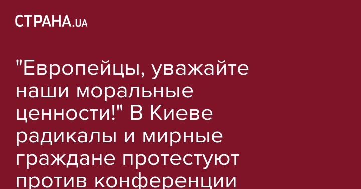 "Европейцы, уважайте наши моральные ценности!" В Киеве радикалы и мирные граждане протестуют против конференции лесбиянок. Фото