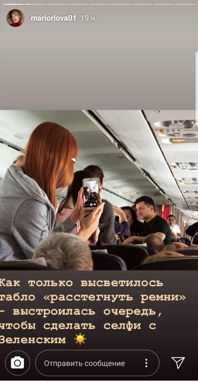"Ну вот, проголосовать мне не удалось, меня не включили в списки, пришлось лично передать голос", "В одном самолете с будущим президентом", "Я тоже не удержалась. Теперь у меня есть селфи с будущим президентом", "Как только высветилось табло расстегнуть ремни - выстроилась очередь, чтобы сделать селфи с Зеленским", - пишут женщины.