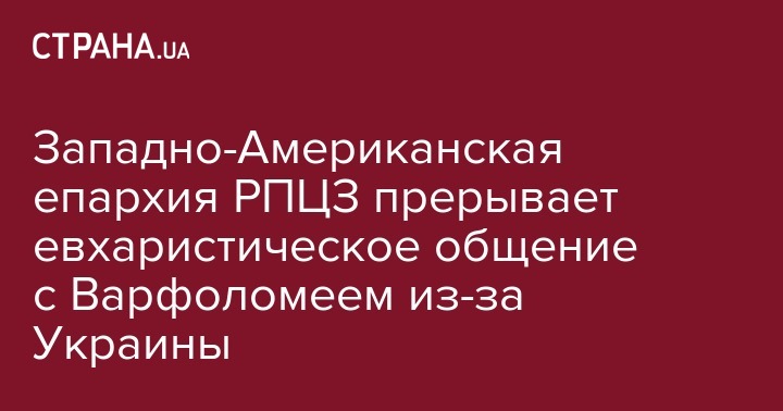 Действия Константинопольского патриархата по Украине не являются каноническими, поэтому Западно-Американская епархия Русской Православной Церкви Заграницей (РПЦЗ) прерывает с ним евхаристическое общение. Об этом сказано в официальном обращении участников совещания духовенства Западно-Американской епархии, опубликованном 11 апреля на официальном сайте РПЦЗ.