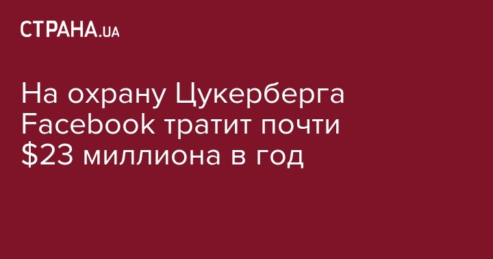 Компания Facebook сообщила, что в 2018 году выделила гендиректору Марку Цукербергу около $23 млн на обеспечение безопасности, что в 4 раза больше, чем в 2016 году. Об этом сообщает CNBC со ссылкой на финансовые документы компании, поданные в Комиссию по ценным бумагам и биржам США.