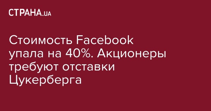 Стоимость Facebook упала на 40%. Акционеры требуют отставки Цукерберга