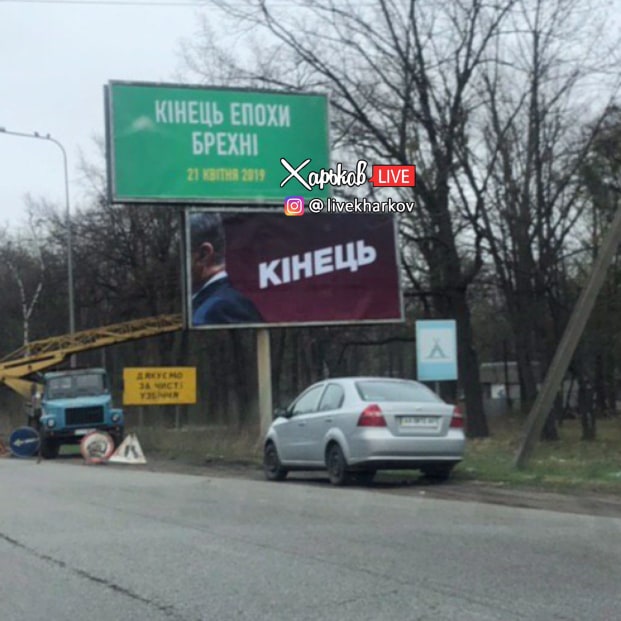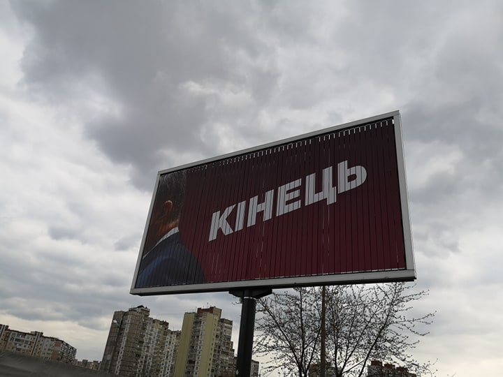 В Украине появились рекламные плакаты с надписью "Конец", выполненные в стилистике лозунга "Думай" Петра Порошенко.