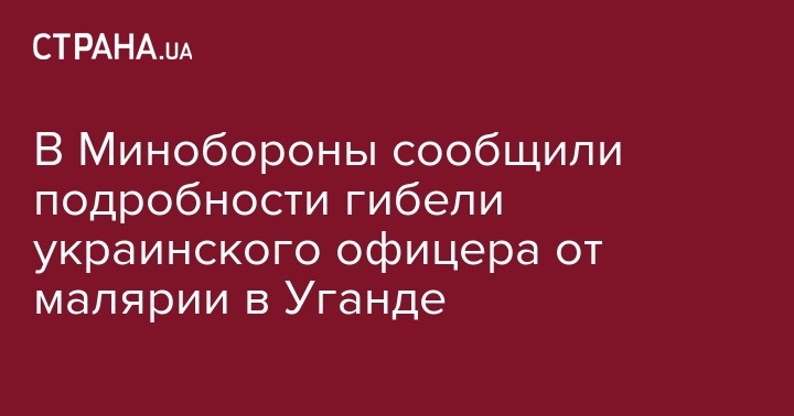 В Министерстве обороны Украины сообщили подробности смерти украинского полковника Юрия Политько, который скончался от малярии в Уганде 11 апреля. Украинский военнослужащий участвовал в миротворческой миссии ООН в Демократической республике Конго. Об этом сообщили в пресс-службе Минобороны Украины.