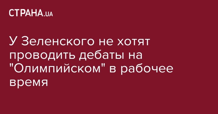 В штабе кандидата в президенты Украины, шоумена Владимира Зеленского считают нецелесообразным предложение штаба другого кандидата в президенты, действующего главы государства Петра Порошенко о проведении дебатов на НСК "Олимпийский" 19 апреля с 16:00 до 18:00, поскольку в это время еще не завершится рабочий день и все желающие послушать кандидатов не смогут добраться до стадиона.