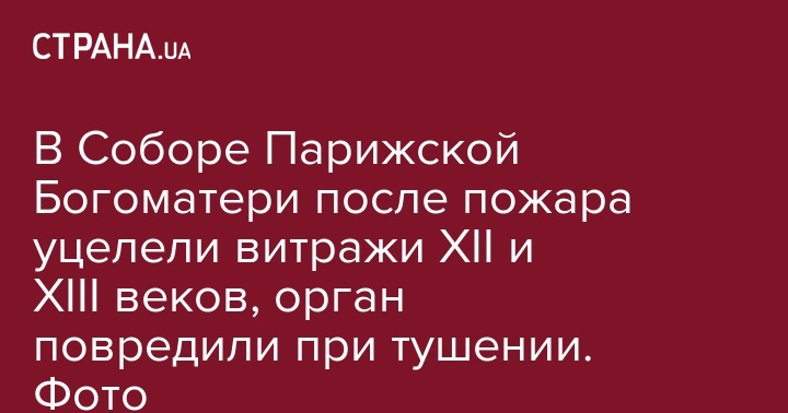 В результате масштабного пожара в Соборе Парижской Богоматери, который почти полностью разрушил архитектурный памятник, уцелели витражи XII и XIII веков. Об этом сообщает BFMTV.