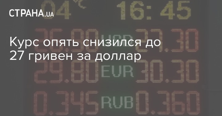 Курс на межбанковском валютном рынке опять снизился до 27 за доллар. 19 февраля к закрытию торгов курс установился на уровне 26,9-27 гривен.