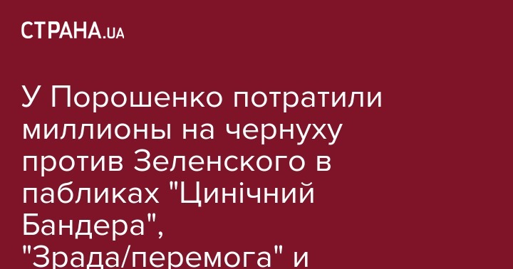 У Порошенко потратили миллионы на чернуху против Зеленского в пабликах "Цинічний Бандера", "Зрада/перемога" и других - расследование