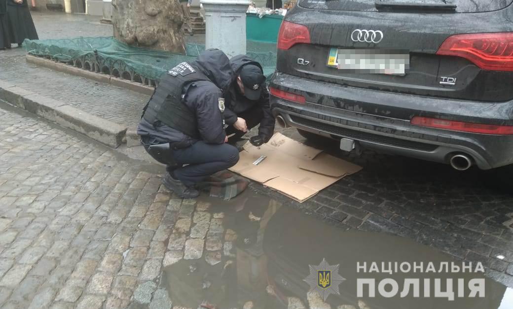 Как сообщала "Страна", в Староконстантиновское отделение полиции обратился киевлянин и сообщил о подозрительном предмете, привязанном к выхлопной трубе его автомобиля. Предмет был закреплен с помощью веревки, скотча и строительных пластиковых хомутиков.