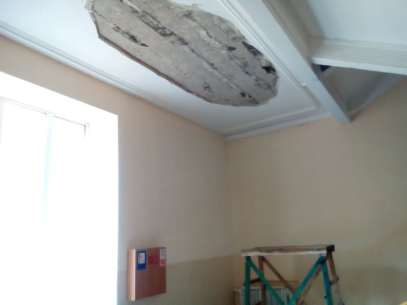 В харьковской школе № 5 посреди дня обвалилась часть потолка. Опасный инцидент произошел в пролете лестничной клетки.