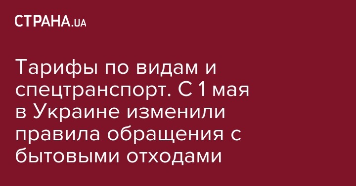 Тарифы по видам и спецтранспорт. С 1 мая в Украине изменили правила обращения с бытовыми отходами