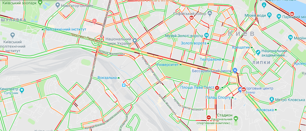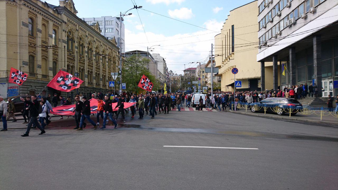 15:37 Колонна идет с Майдана на стадион. Движение частично перекрыто.