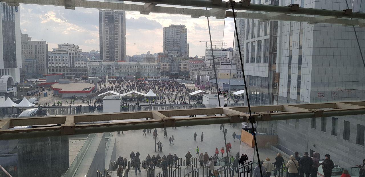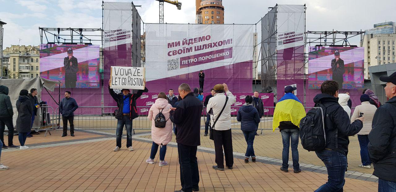 Даже массовка Порошенко заметно приуныла – хотя ее было втрое больше, чем пришло в поддержку Зеленского.