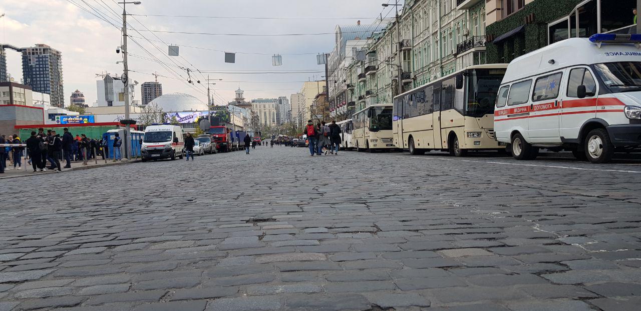 14:45 У стадиона машины не могут проехать. Пешком можно добраться обходными путями. дежурят правоохранители. В оцепленной зоне нужно предъявлять документы.