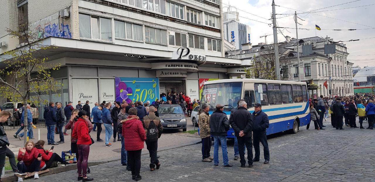 15:47 Многих зрителей из регионов в Киев свезли автобусы. У ТЦ Гулливер многих собирали по спискам.