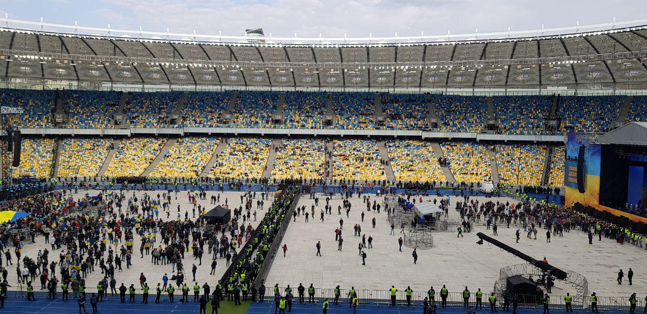 19 апреля. В 19:00 на стадионе должны начаться дебаты с участием двух кандидатов. Они арендовали стадион на целый день. После НСК "Олимпийский" Порошенко намерен поехать еще и на телеканал "UA:Суспільне", чтобы провести дебаты "в нормальных студийных условиях, более пригодных для содержательной дискуссии". Владимир Зеленский не выразил желания участвовать в еще одних дебатах за вечер. При этом Порошенко говорят, что официальными дебатами нужно считать выступление в телестудии, у Зеленского - что на стадионе.