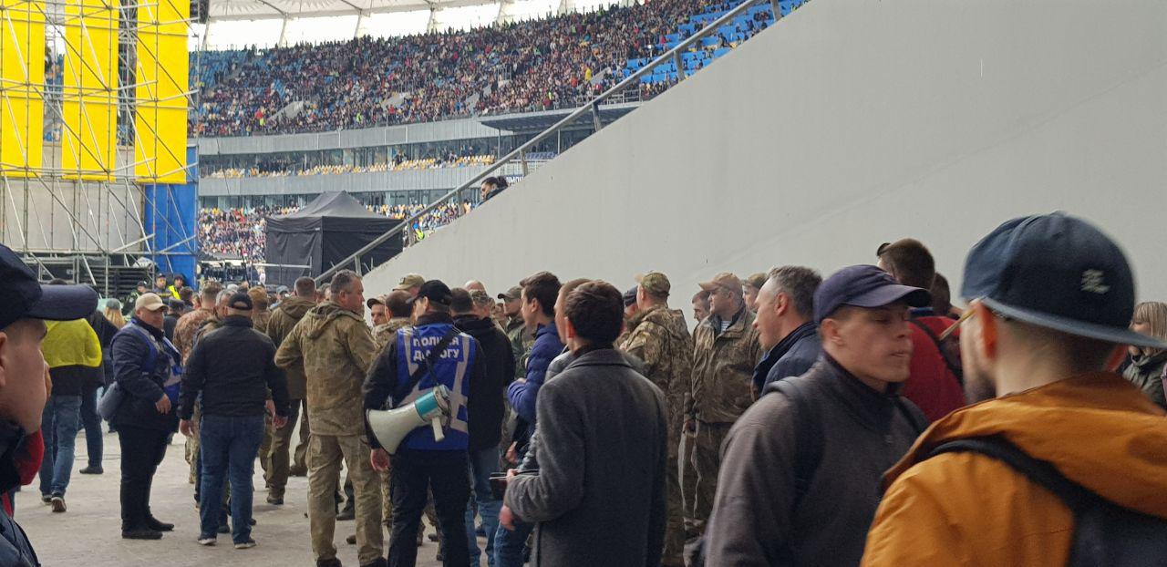 16:42 Уже появилась информация, что на стадион не могут попасть некоторые журналисты. Например, журналист NewsOne Богдан Аминов, который регистрировался через Администрацию Президента. В списках его не нашли.