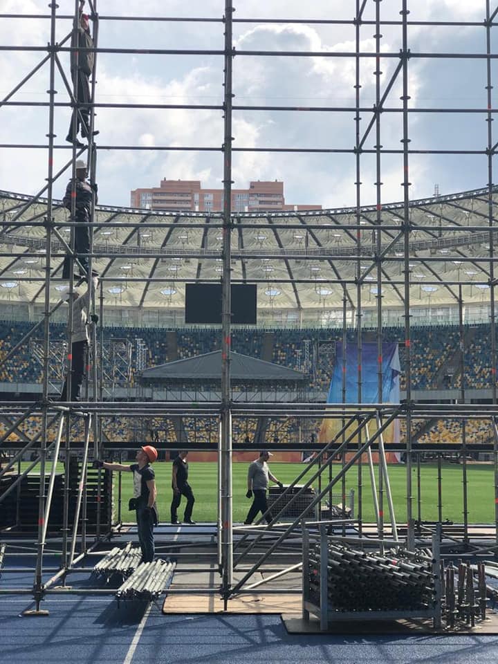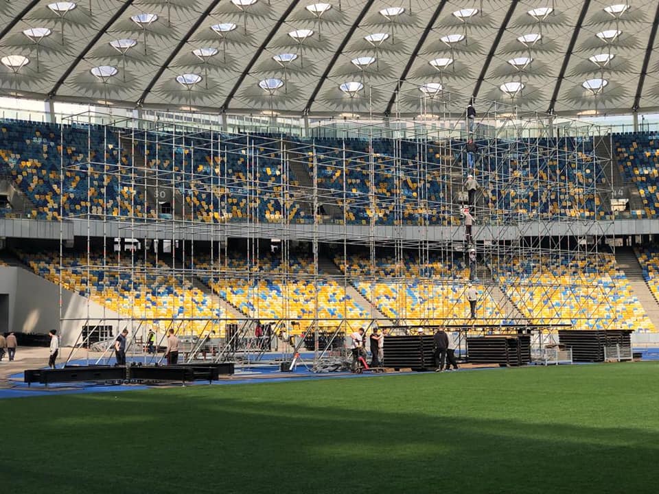 Он сказал, что сторонами было достигнуто соглашение, что установить сцену на газоне стадиона не получится, поскольку что через несколько дней состоится футбольный матч и к этому времени поле будет испорчено (матч "Динамо" - "Шахтер" 24 апреля - Прим.Ред). Было принято решение поставить сцену так, как обычно она ставится на концертах. Но "потом вернулись наши оппоненты и сказали, что поставят свою сцену с другой стороны".