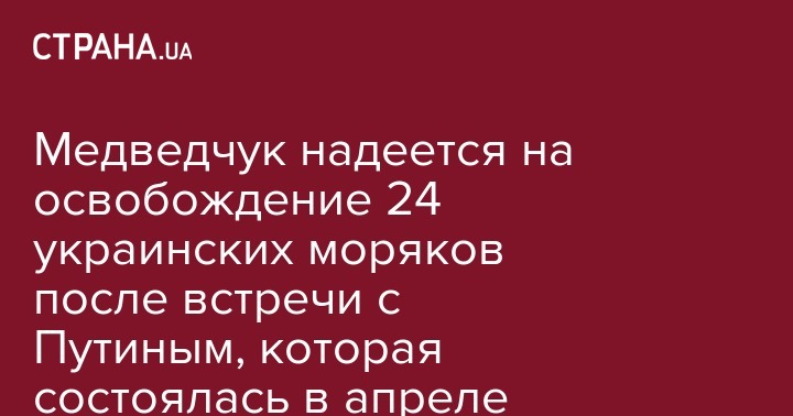 Медведчук заявил, что "продолжит бороться за украинских заключенных частным образом и питает надежду на освобождение 24 моряков" после перелета через Белоруссию для встречи с Путиным в этом месяце.