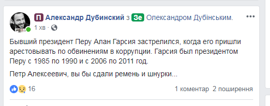 Скриншот: facebook.com/alshevchenko