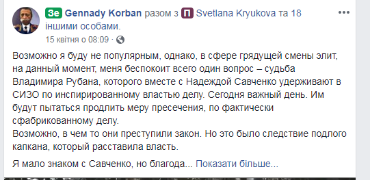Экс-глава партии "Укроп" Геннадий Корбан оказался сторонником Владимира Зеленского, а вот заместитель главного редактора "Страны" Светлана Крюкова, с которой поделился постом политик, высветилась как "порохобот".