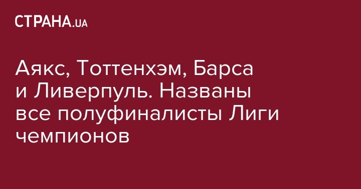 Аякс, Тоттенхэм, Барса и Ливерпуль. Названы все полуфиналисты Лиги чемпионов