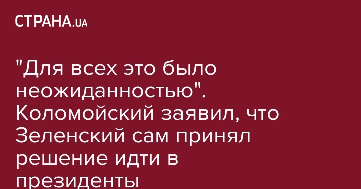 Коломойский подчеркнул, что это было самостоятельное решение шоумена, которое стало для всех неожиданностью. "То, что он решил идти в президенты, это было его самостоятельное решение. Для всех это было, как вы понимаете, неожиданностью", - сказал бизнесмен.