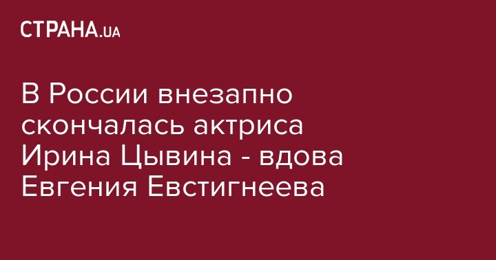 В возрасте 55 лет скончалась российская актриса Ирина Цывина, вдова Евгения Евстигнеева. Об этом сообщает ТАСС со ссылкой на подругу артистки Ксению Хаирову.