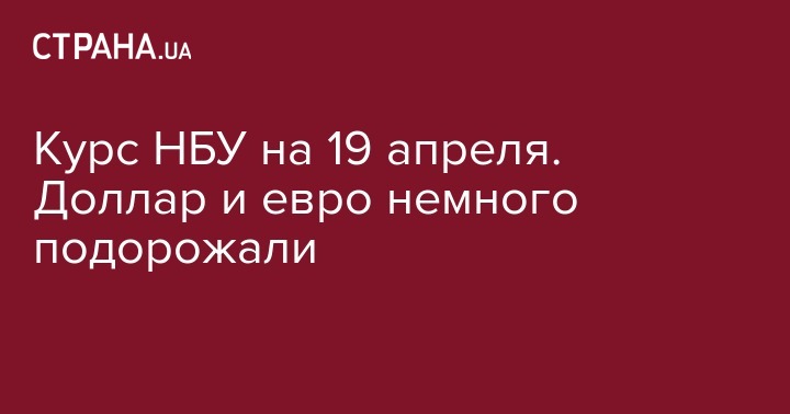Курс НБУ на 19 апреля. Доллар и евро немного подорожали