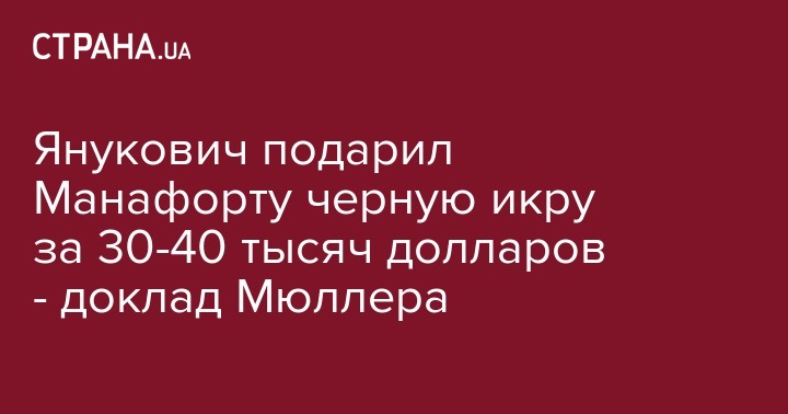 Янукович подарил Манафорту черную икру за 30-40 тысяч долларов - доклад Мюллера