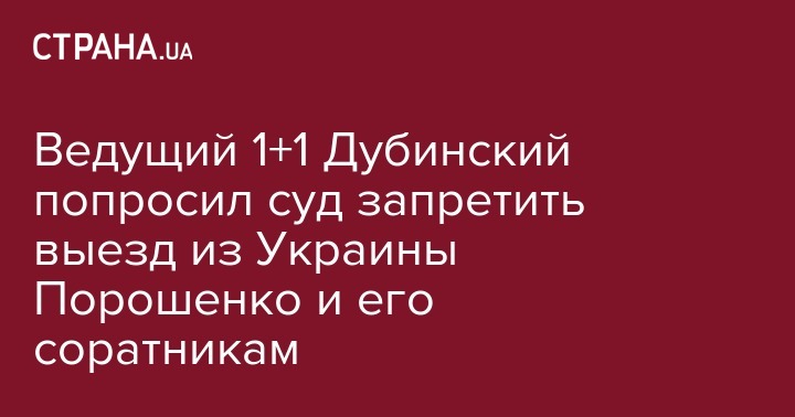 Известный блогер и телеведущий "1+1" Александр Дубинский просит Окружной административный суд Киев запретить выезд за границу президенту Петру Порошенко, главе Администрации Президента Игорю Райнину и первому зампредседателя фракции БПП Игорю Кононенко. Об этом говорится в сообщении пресс-службы суда.