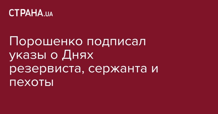 Президент Украины Петр Порошенко своими указами от 19 апреля установил в Украине три праздника: День пехоты (6 мая), День резервиста (18 мая) и День сержанта Вооруженных Сил Украины (18 ноября). Об этом свидетельствует информация на сайте главы государства.