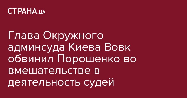 Председатель Окружного административного суда Киева Павел Вовк расценивает высказывания президента Украины Петра Порошенко в адрес суда как вмешательство в деятельность судей. Об этом он сообщил на своей странице в соцсети.