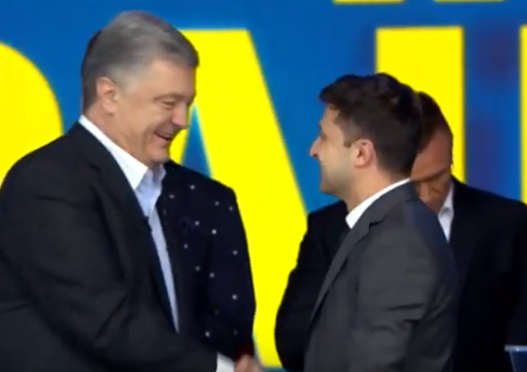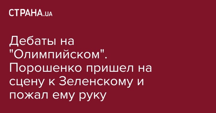 Во время дебатов на НСК "Олимпийский" вечером 19 апреля Петр Порошенко вышел на сцену к своему оппоненту Владимиру Зеленскому и пожал ему руку.
