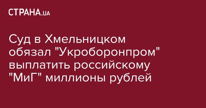 Суд в Хмельницком обязал "Укроборонпром" выплатить российскому "МиГ" миллионы рублей