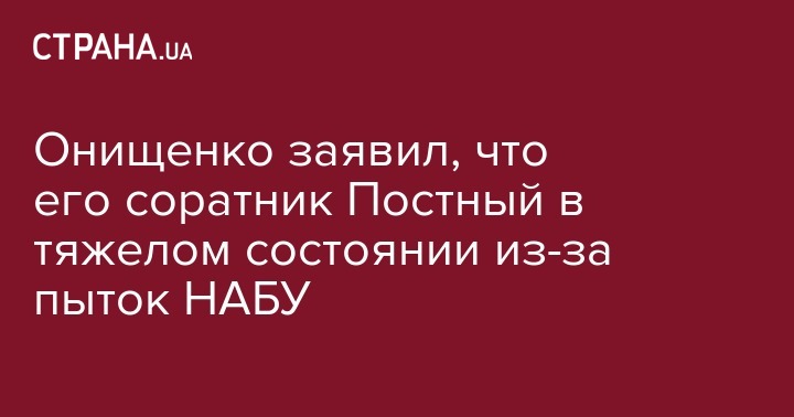 Фигурант уголовного дела о махинациях в "Укргаздобыче" Валерий Постный находится в тяжелом состоянии и пережил пытки, которым его подвергали сотрудники Национального антикоррупционного бюро. С таким заявлением выступил народный депутат Александр Онищенко, передает 112 Украина.