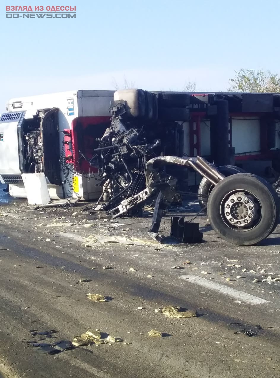 Фуры столкнулись в в Ивановском районе Одесской области у поворота на село Шеметово. По предварительным данным, водитель автомобиля, который ехал в направлении Одессы, не справился с управлением, так как уснул. Автомобиль перевернулся на бок, снес дорожное ограждение. От удара в бетонные столбы недостроенного моста из фуры вылетел мотор, и оторвало водительскую кабину.